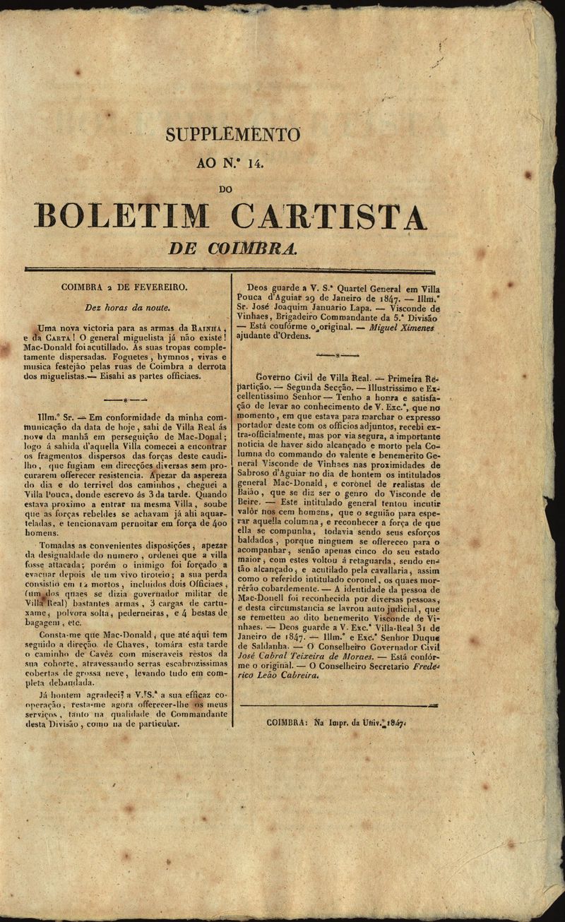 Boletim cartista de Coimbra Suplemento ao Nº14