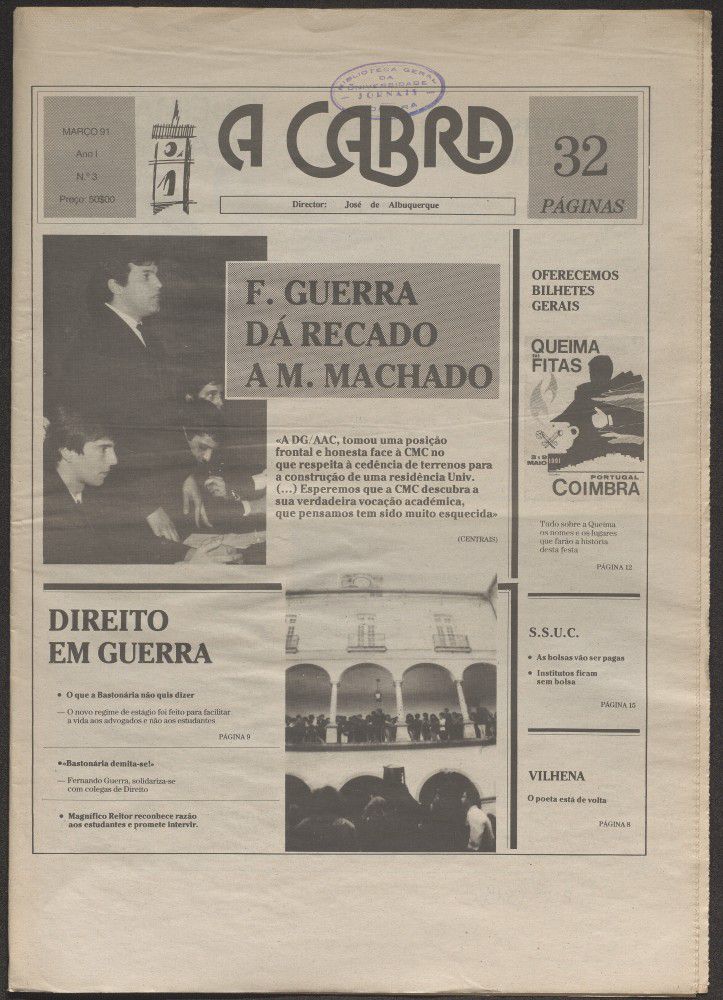 A cabra : jornal universitário de Coimbra - A. 1, n.º 3 (mar. 1991)