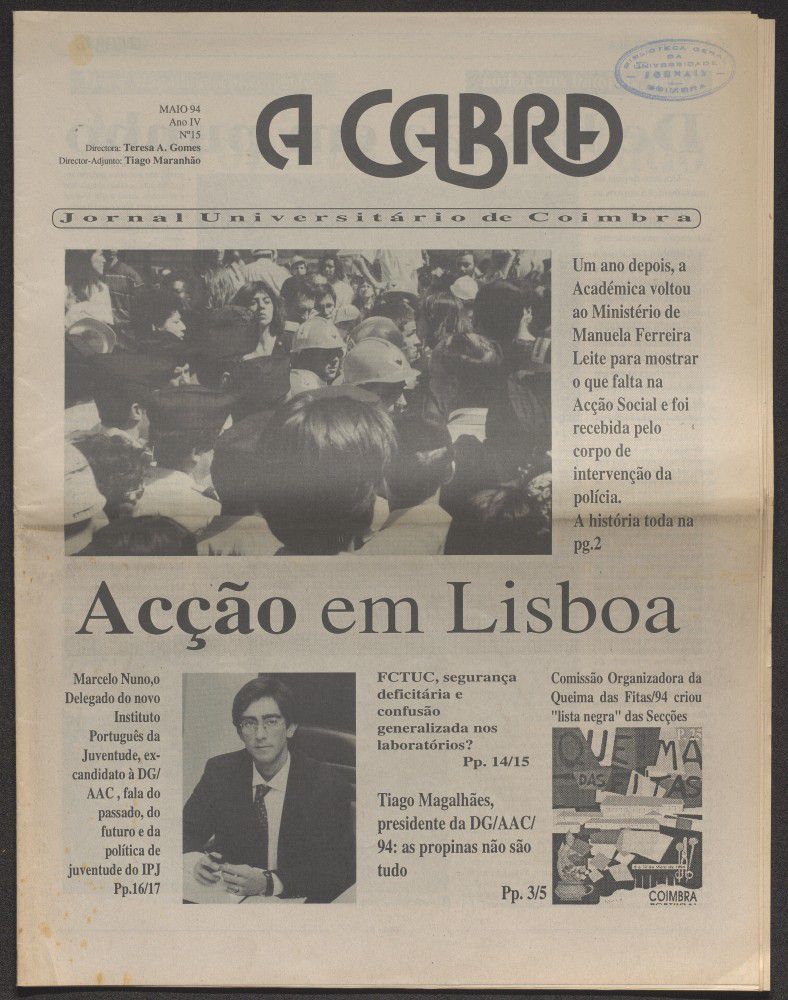 A cabra : jornal universitário de Coimbra - A. 4, n.º15 (mai. 1994)