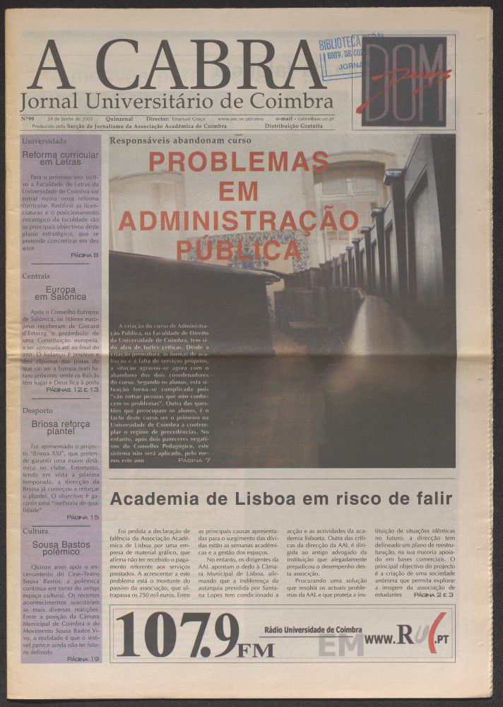 A cabra : jornal universitário de Coimbra - A. 13, n.º99 (jun. 2003)
