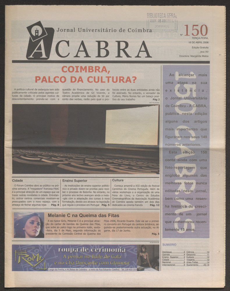 A cabra : jornal universitário de Coimbra - A. 16, n.º150 (abr. 2006)