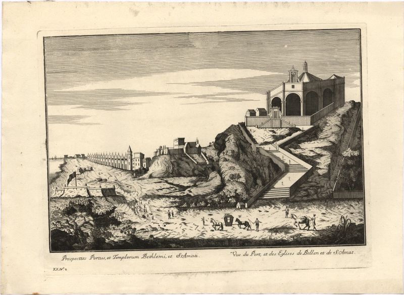 Prospectus Portus, et Templorum Bethlemi, et S. Amati = Vue du Port, et des Eglises de Bellen et de S. Amat
