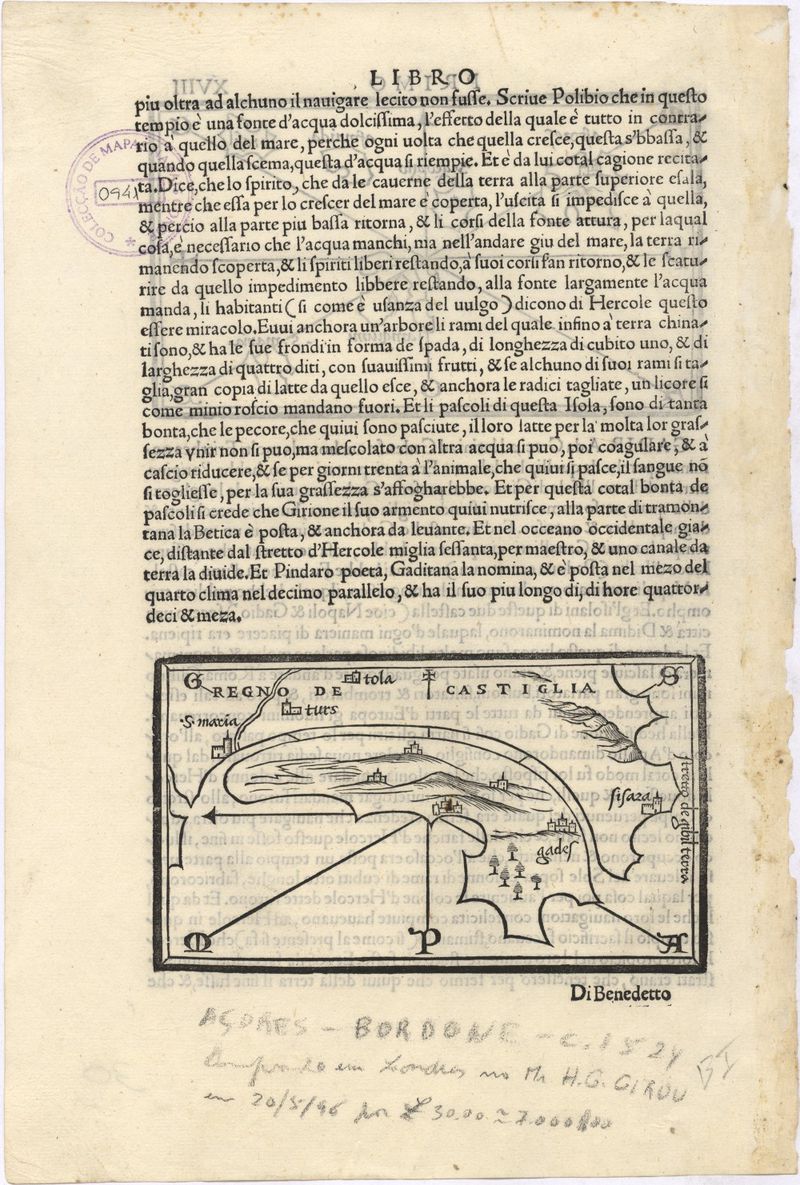 Inclui as ilhas míticas de Asmaida e brasil, no verso mapa do reino de Castiglia.