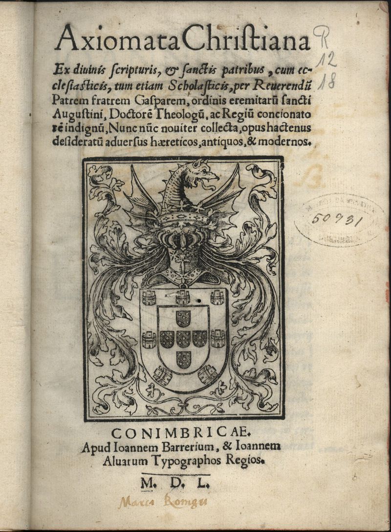 Conimbricae : apud Ioannem Barrerium & Ioannem Aluarum, 1550