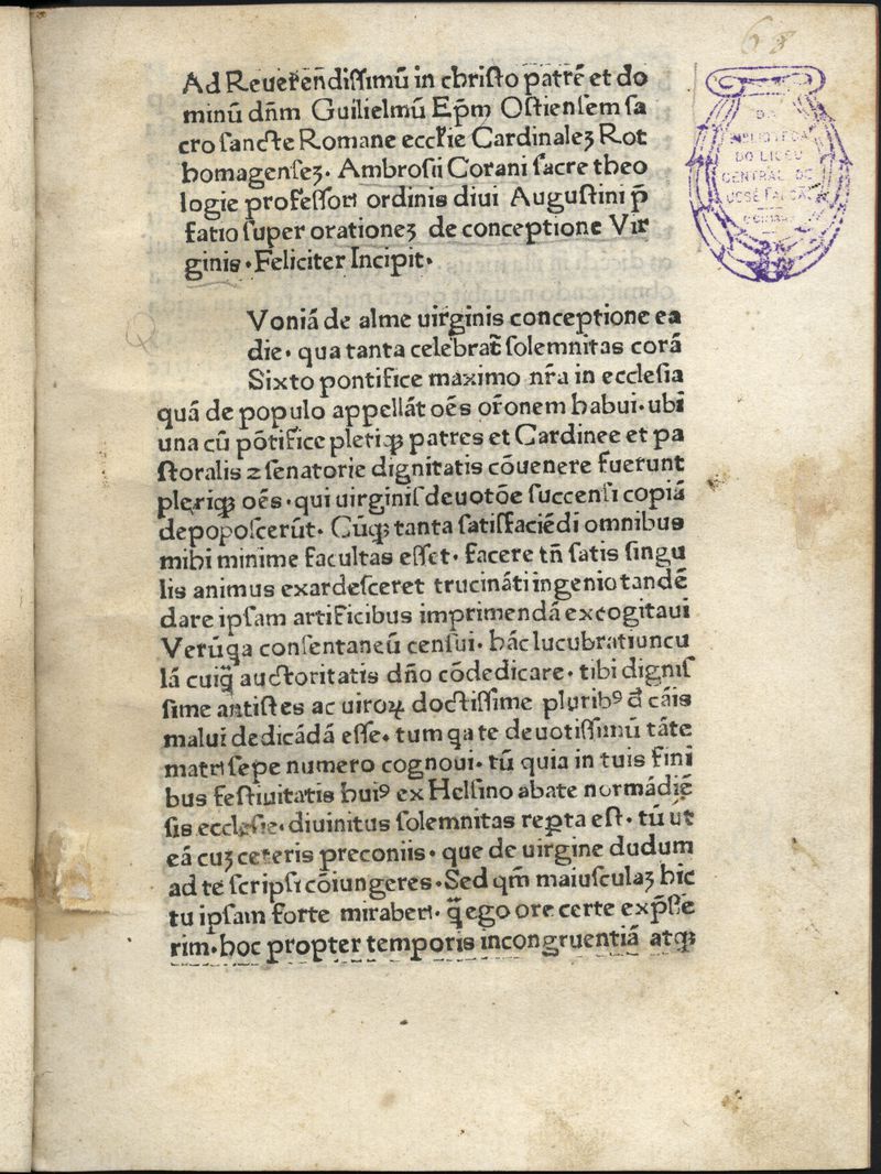 Na 1ª obra f. iniciais restauradas. - Na obra "Caii Plinii Secundi novocomensis oratoris" Falta a f. com a assin. a//1, a f. com a assin. d//2 deslocada entre as f. com as assin. c//8 e a f. d//1. - Aparado. - Manchas de acidez e humidade. - Pert. mss. "S