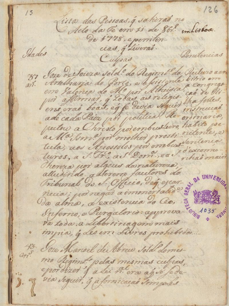 Na primeira parte deste manuscrito vem a Lista das pessoas sentenciadas na referida data: ocupa cinco páginas e meia.