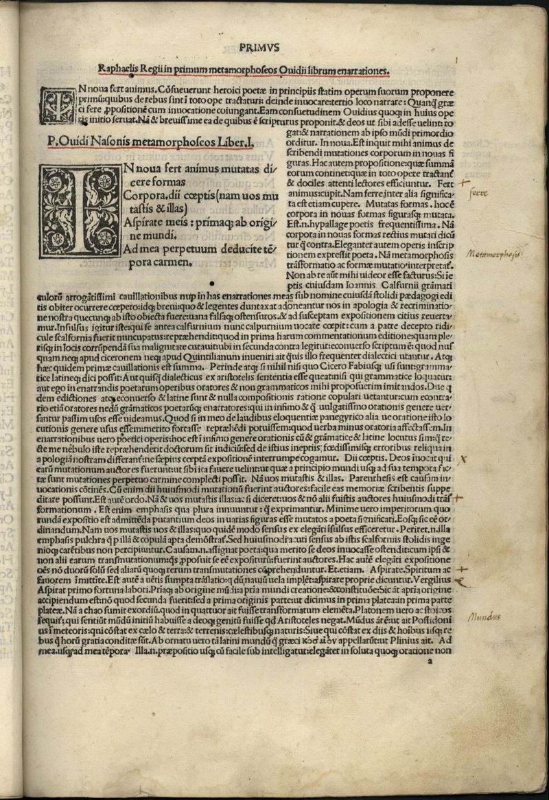 P. Ouidii Metamorphosis cum integris ac emendatissimi Raphaelis Regii enarrationibus & repraehensione illaru[m] ineptiarum: quibus ultimus Quaternio primae editionis fuit inquinatus