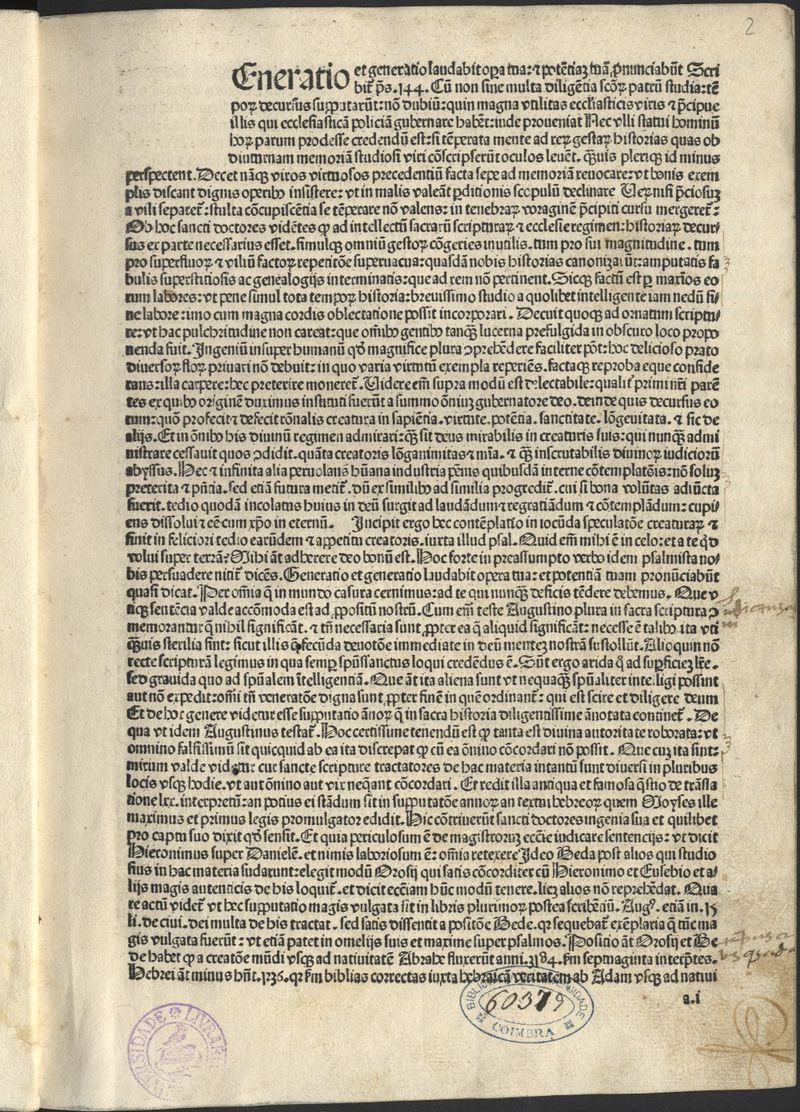 F. [1] em branco. - Aparado. - F. com a assin. a//7 mut. - Manchas de acidez, humidade e picos de insectos. - Notas mss. - Enc. com uma obra do sec. XVI. - Enc. em perg.