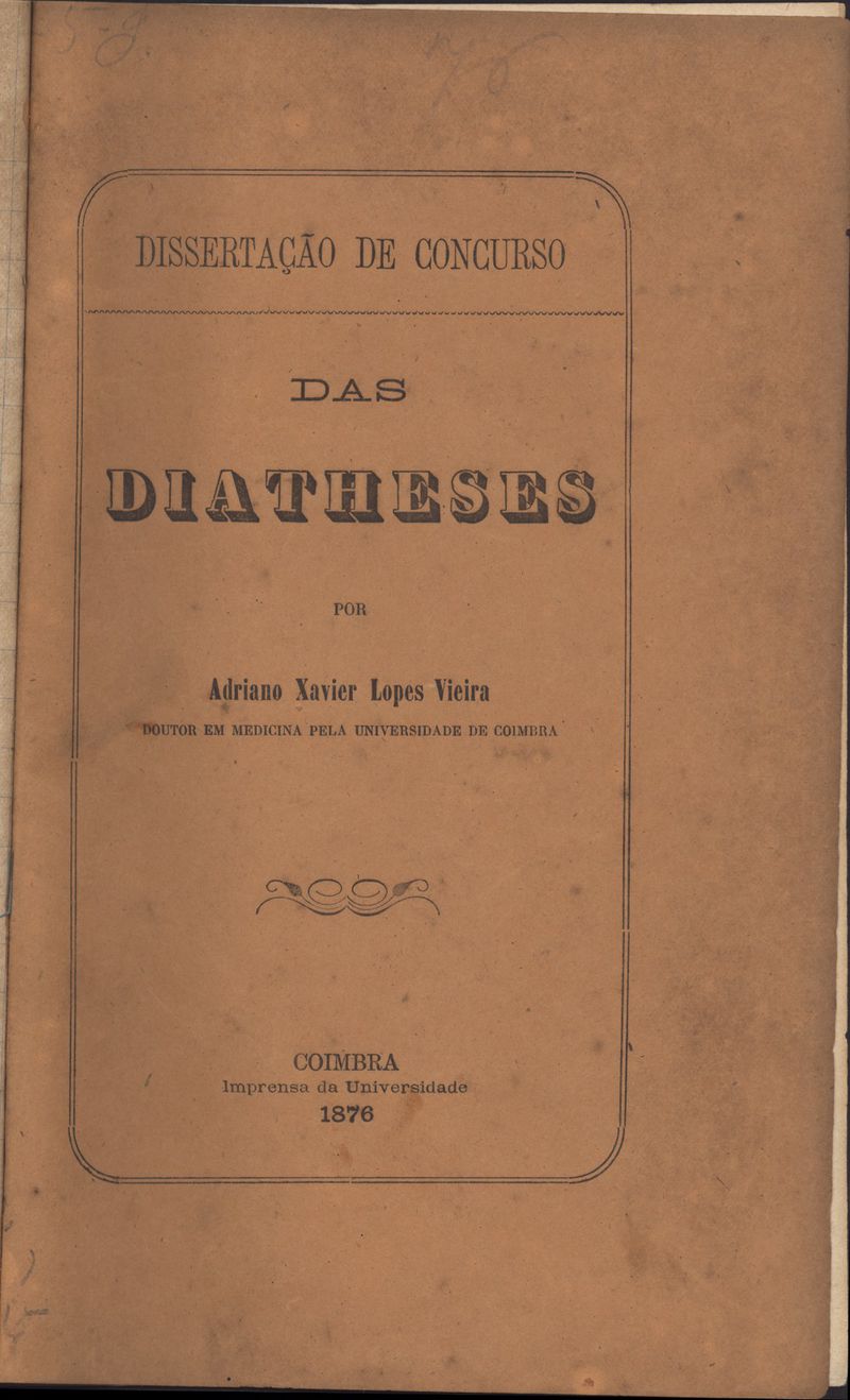 Dissertação de concurso apresentada à Faculdade de Medicina da Universidade de Coimbra, 1876.