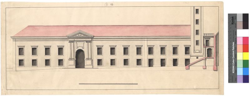 [Alçado de fachada de edifício da Universidade de Coimbra] [projecto não executado para a ala Oeste do pátio, elevação]