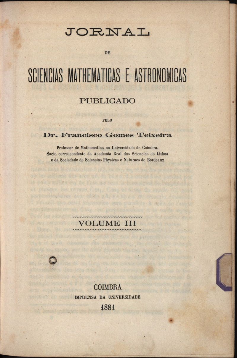 Jornal de sciencias mathematicas e astronomicas - Volume 3