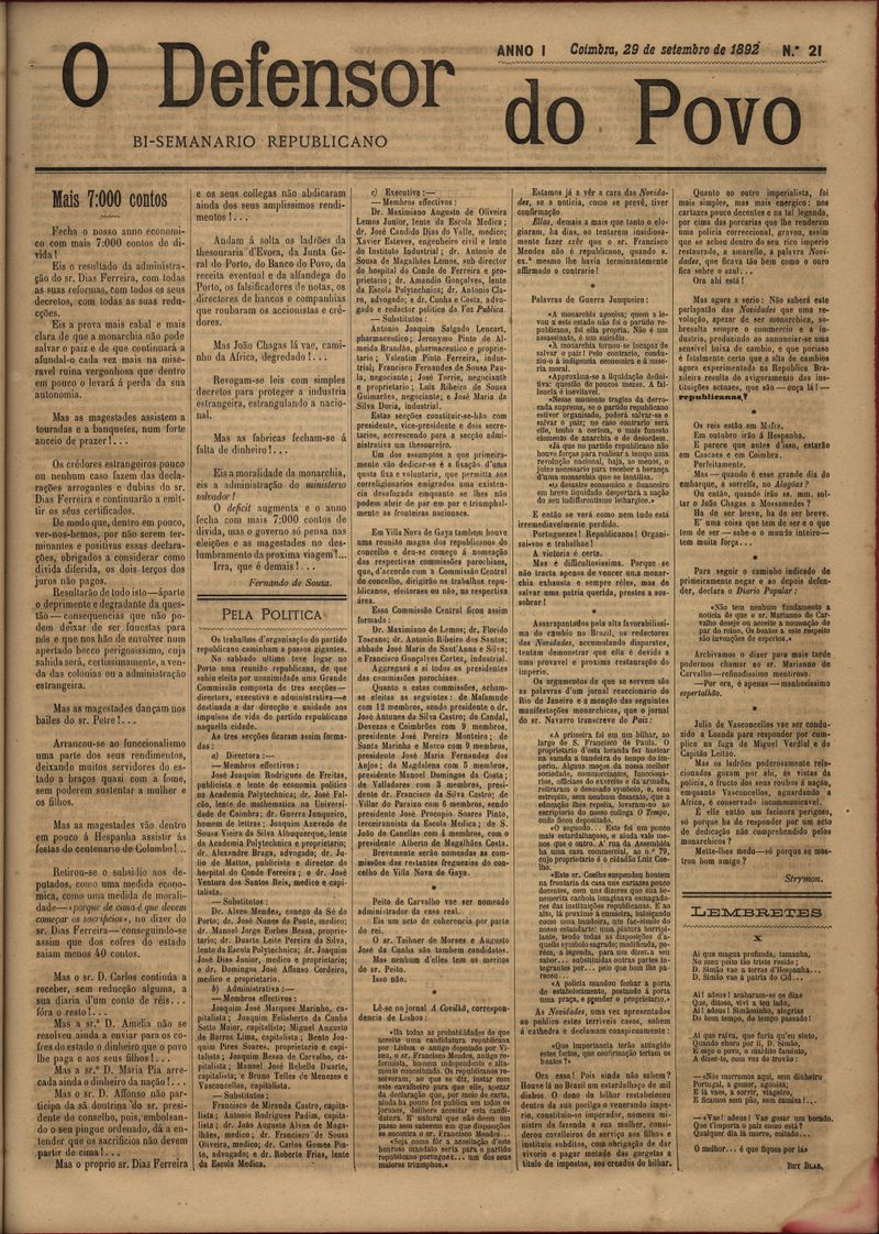 Coimbra: Typ. Operaria, 1892-1899