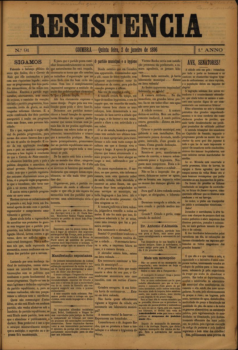 Resistência : orgão do Partido Republicano de Coimbra