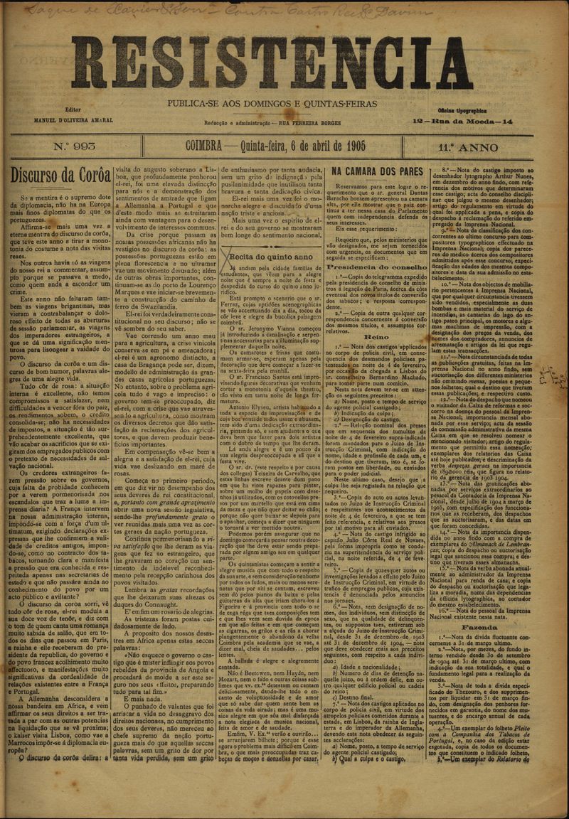Resistência : orgão do Partido Republicano de Coimbra