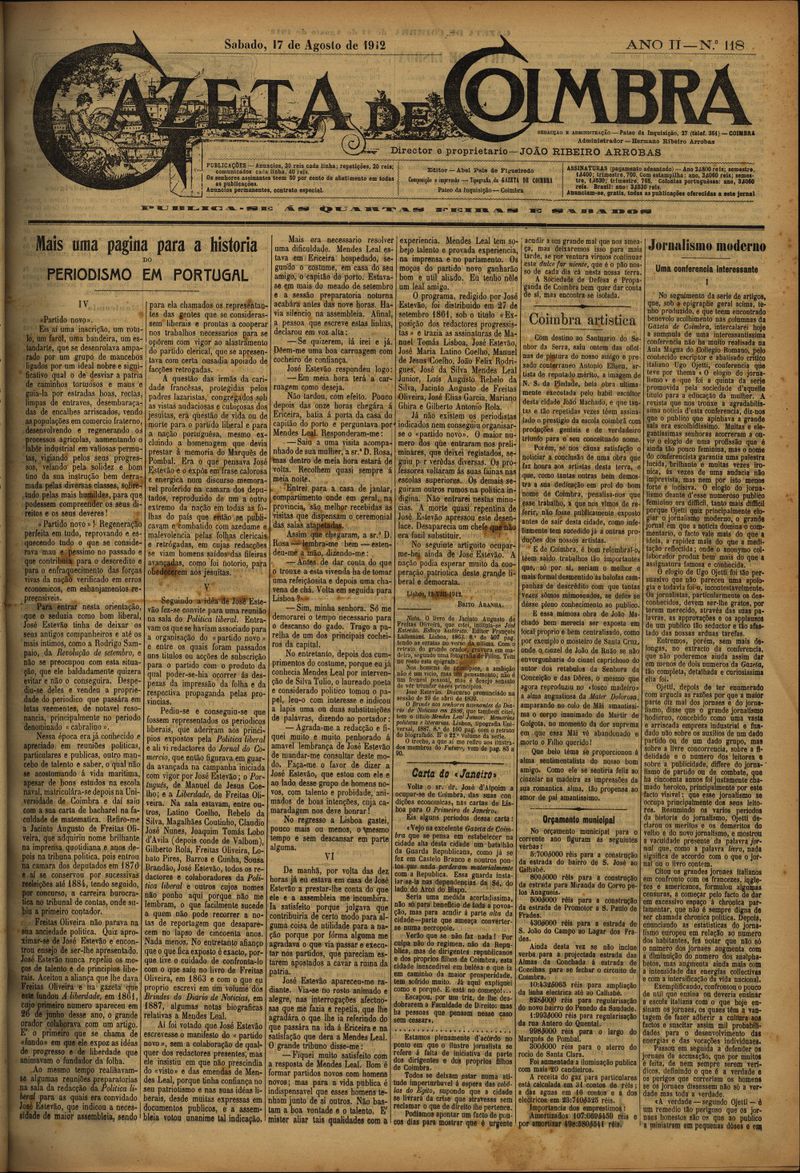 Gazeta de Coimbra 1912, Agosto 17, sábado - Nº118