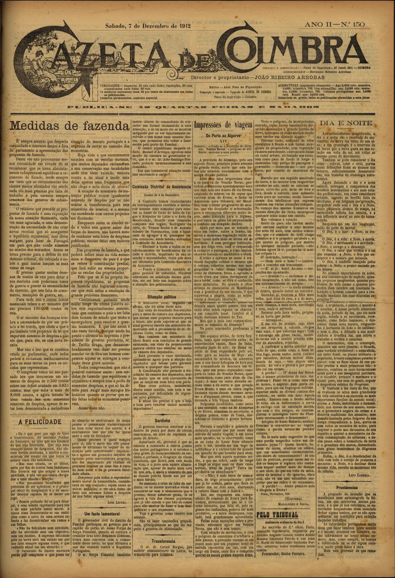 Gazeta de Coimbra 1912, Dezembro 07, sábado - Nº150