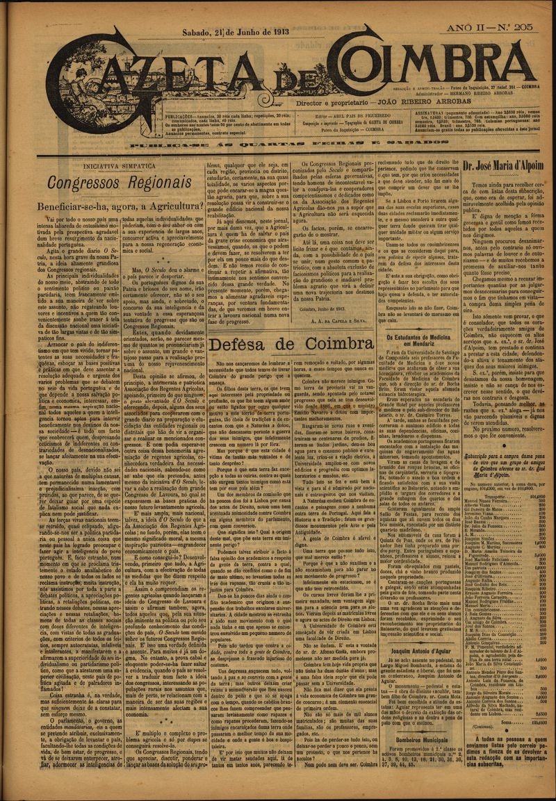 Gazeta de Coimbra 1913, Junho 21, sábado - Nº205
