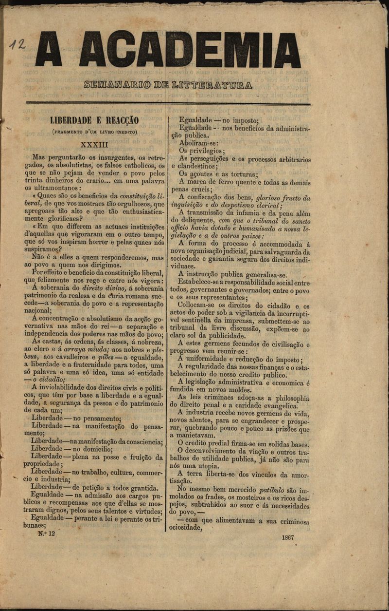 A academia Nº12 1867
