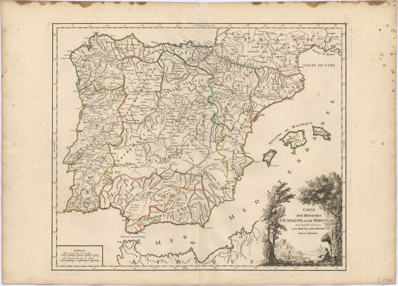 Carte des Royaumes d'Espagne et de Portugal : dans laquelle sont tracées les Routes des Postes