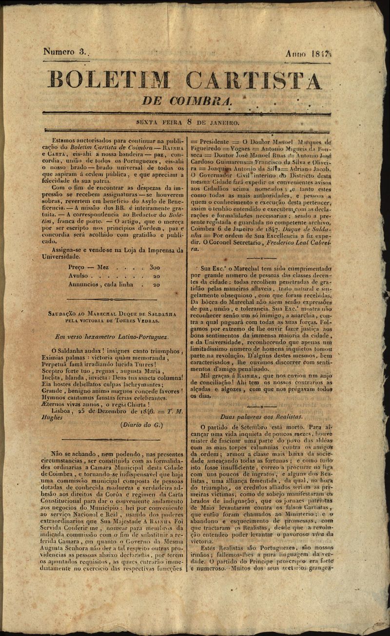 Boletim cartista de Coimbra Nº3