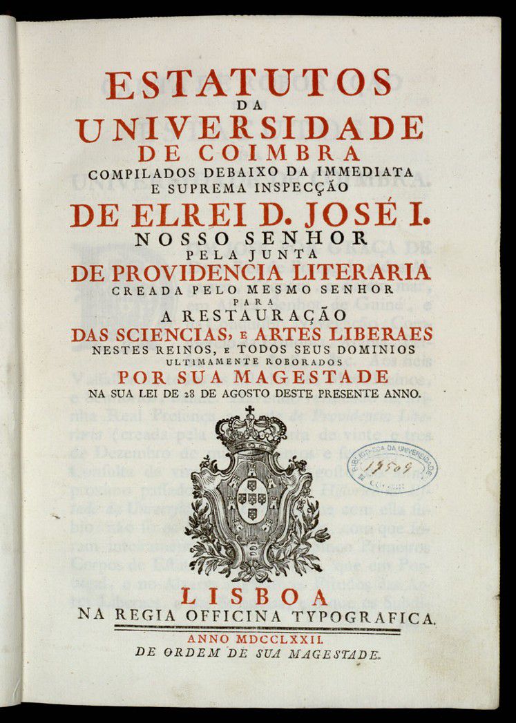 Livro I: Do Curso Theologico. - XVI, 252 p. - Livro II: Cursos Juridicos das Faculdades de Canones e de Leis. - XI, [1 br.], p. 253-643, [1 br., 4] p. - Livro III: Cursos das Sciencias Naturaes e Filosoficas. - XI, [1 br.], 271, [1 br.], 7, [1 br.] p.