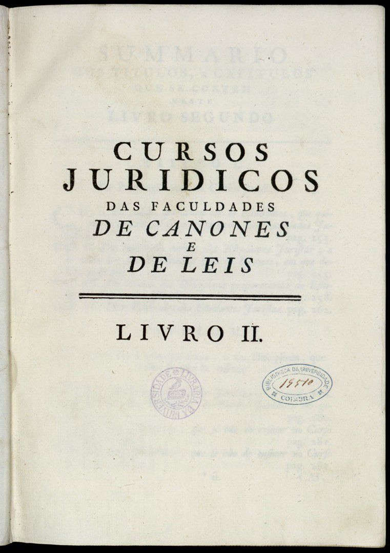 Livro I: Do Curso Theologico. - XVI, 252 p. - Livro II: Cursos Juridicos das Faculdades de Canones e de Leis. - XI, [1 br.], p. 253-643, [1 br., 4] p. - Livro III: Cursos das Sciencias Naturaes e Filosoficas. - XI, [1 br.], 271, [1 br.], 7, [1 br.] p.