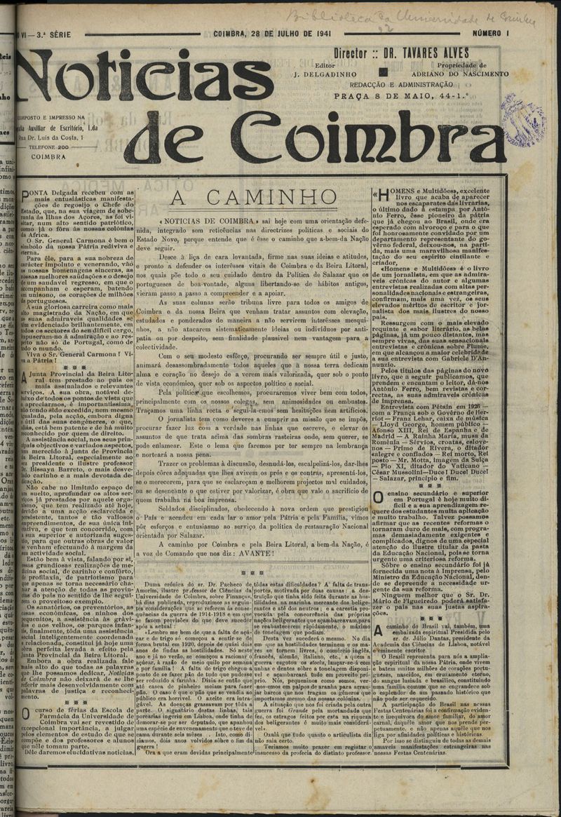 Notícias de Coimbra : semanário noticioso, literário e de crítica