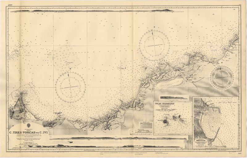 Encartes: Islas Chafarinas, escala 1:25 000 projection gnomonic ; Puerto de Melilla, escala 1:15 000 projection gnomonic.