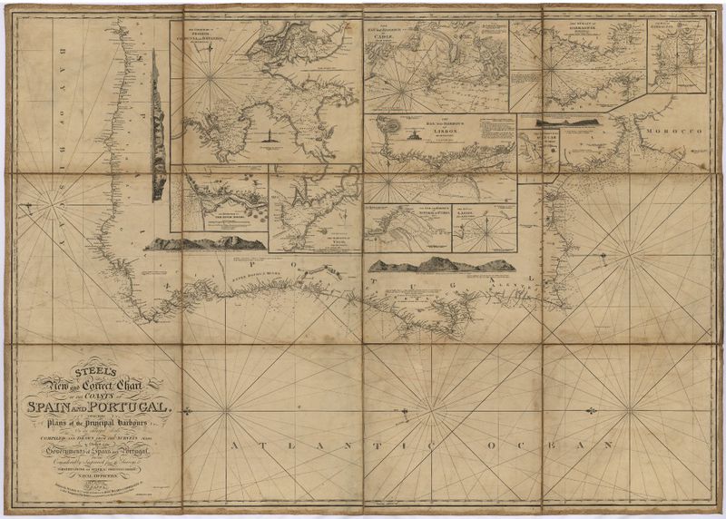 Inclui em inserto planos dos portos de Ferrol, Coruna, Betanzos, Cadiz, Estreito de Gibraltar, Baía de Gibraltar, Douro, Vigo, Lisboa, St. Lucar, Sevilha, Setúbal e Lagos.