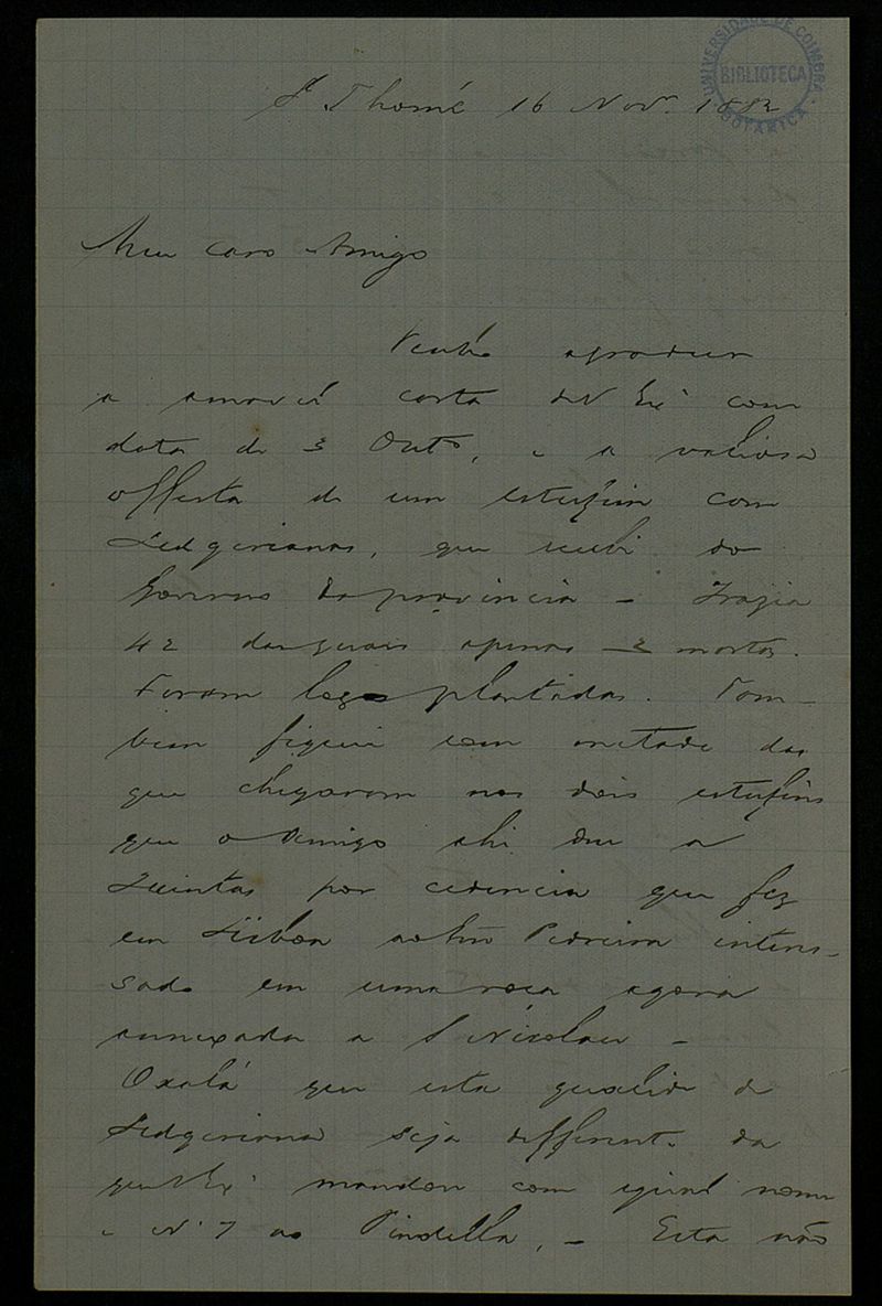 [Carta], 1882 Nov. 16, S. Thomé, [a Júlio Henriques, Coimbra]