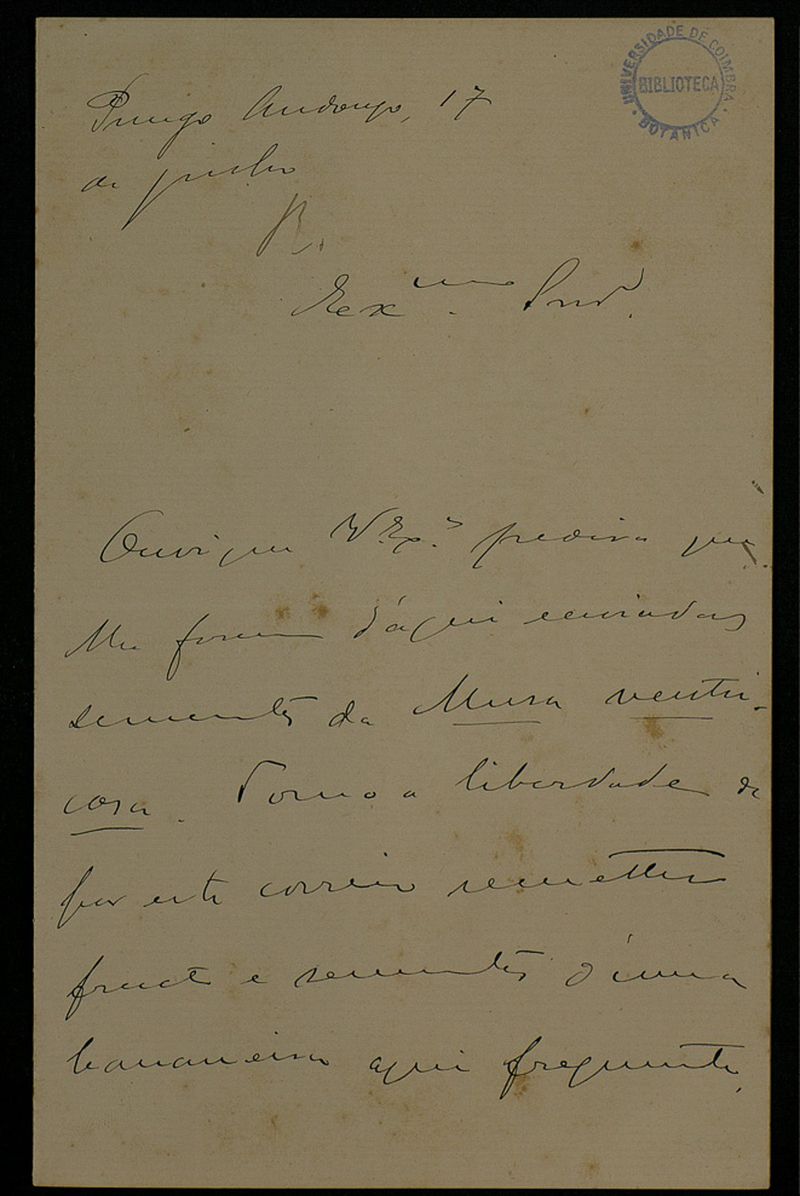 [Carta, 19--] Jun. 17, Pungo Andongo, [a Júlio Henriques, Coimbra]