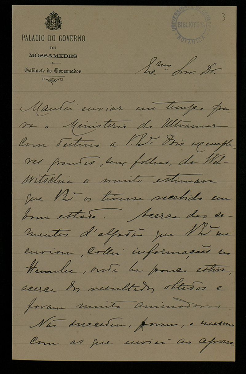 [Carta], 1901 Out. 19, Mossamedes, [a Júlio Henriques, Coimbra]