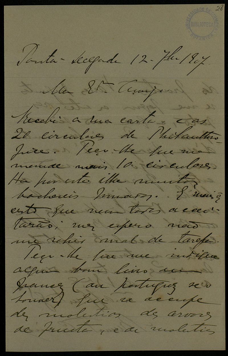 [Carta], 1907 Jun. 12, Ponta Delgada, [a Júlio Henriques, Coimbra]