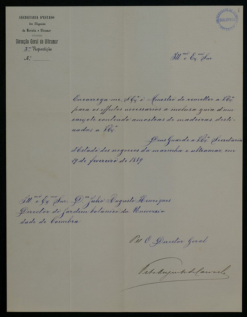 [Carta], 1889 Fev. 19, [Lisboa], a Dr. Júlio Augusto Henriques, Coimbra