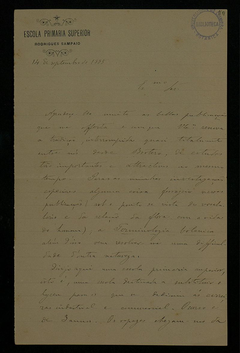 Papel timbrado de: Escola Primaria Superior Rodrigues Sampaio.