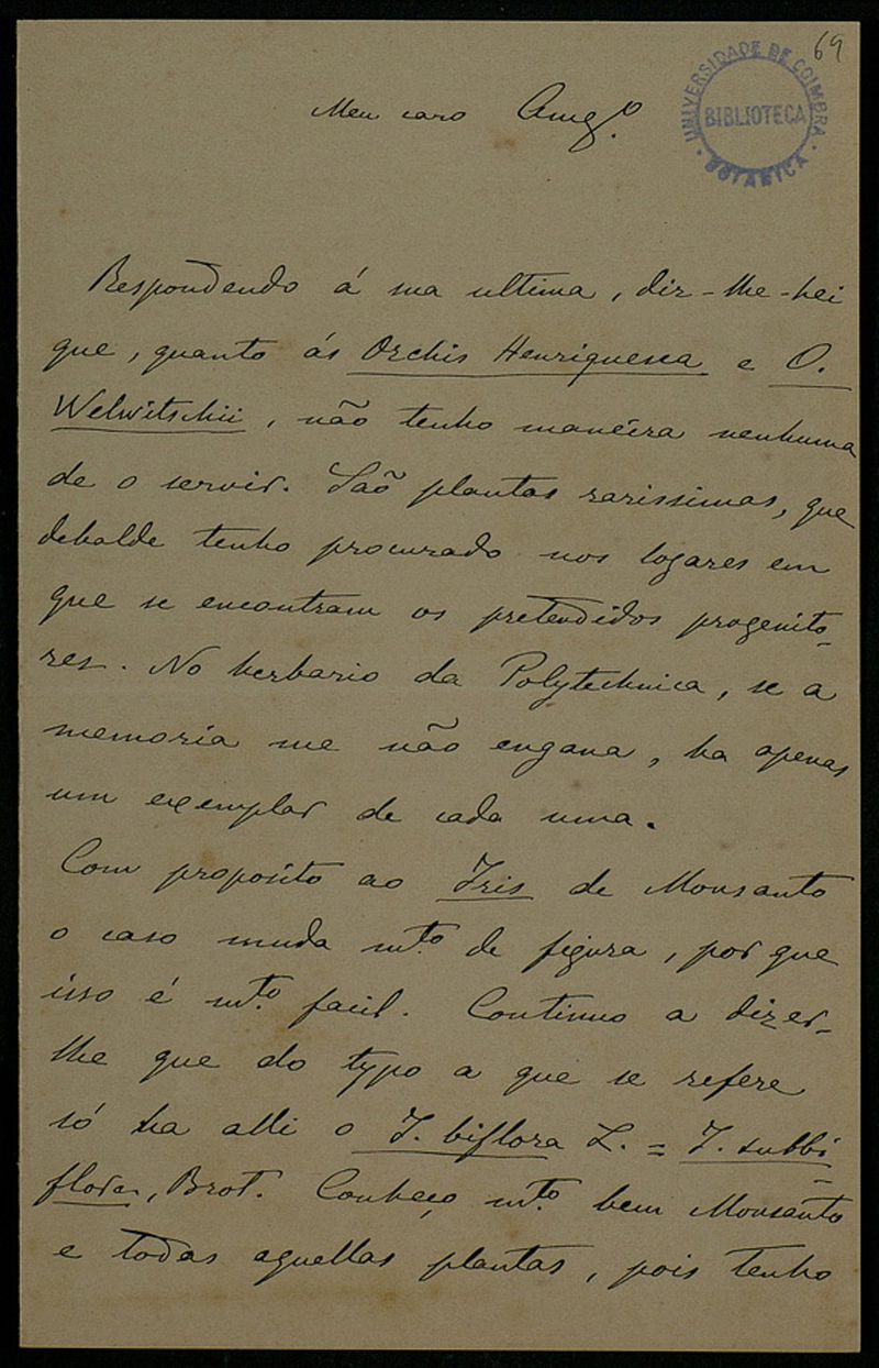 Henriques, Júlio Augusto, 1838-1928 (destinatário)