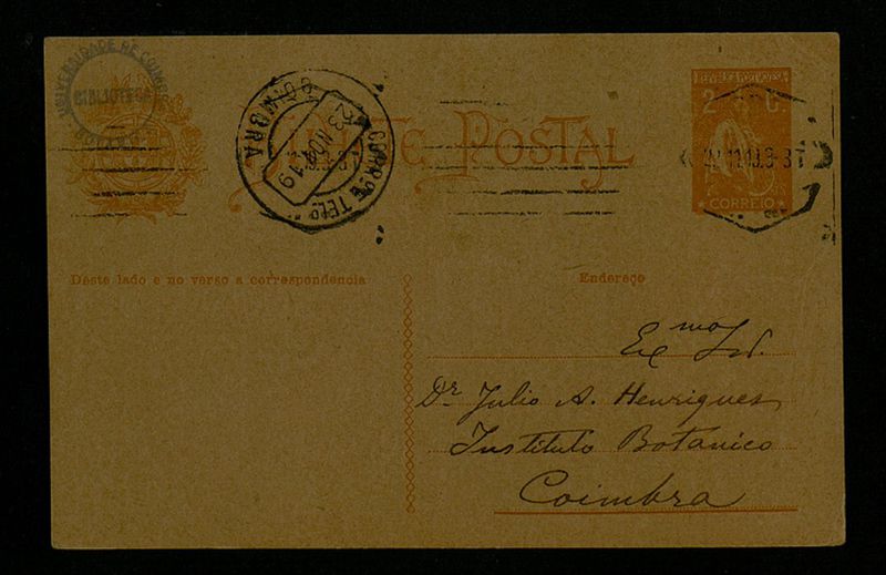 Bilhete Postal, 1919 Nov. 22, Lisboa, [a] Dr. Júlio A. Henriques, Coimbra