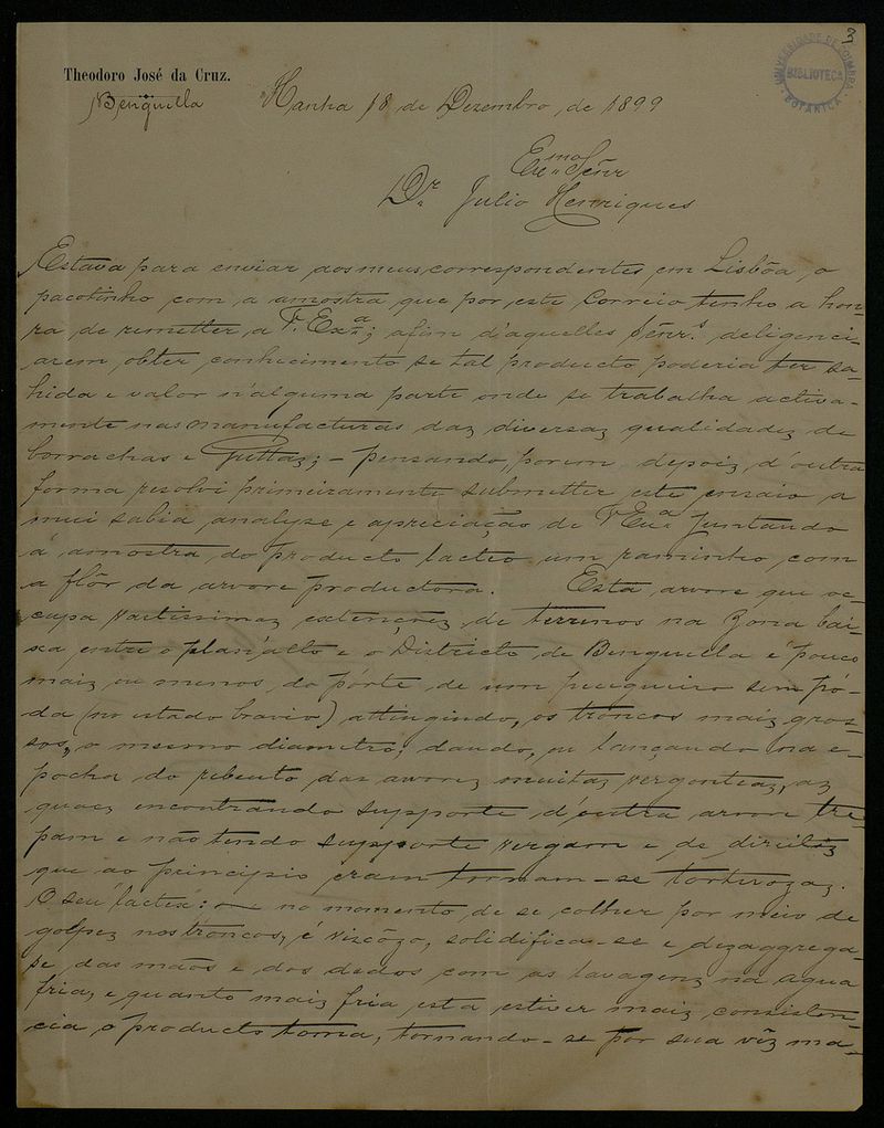 [Carta], 1899 Dez. 18, Hanha, a Júlio Henriques, Coimbra
