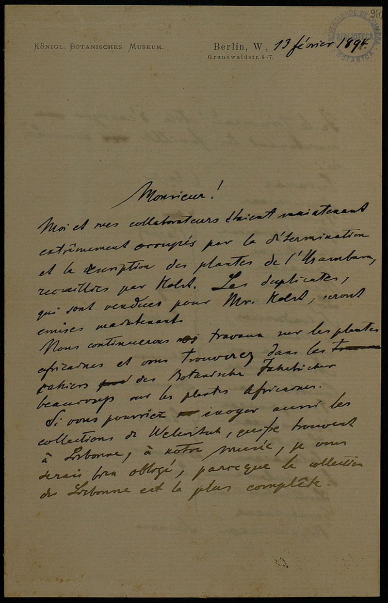 [Lettre], 1894 fév. 13, Berlin, [à Júlio Henriques], Coimbra