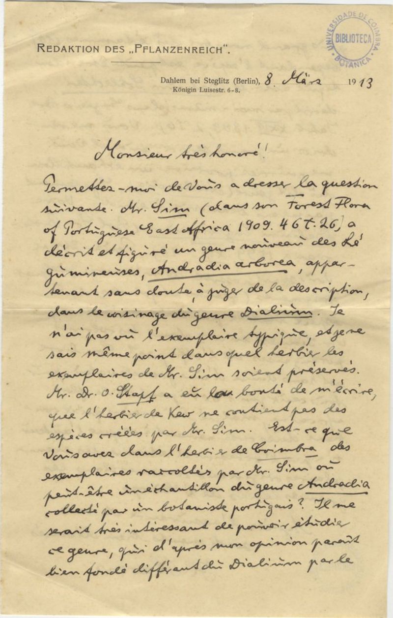 [Lettre], 1913 mars 08, Berlin, [à Júlio Henriques, Coimbra]