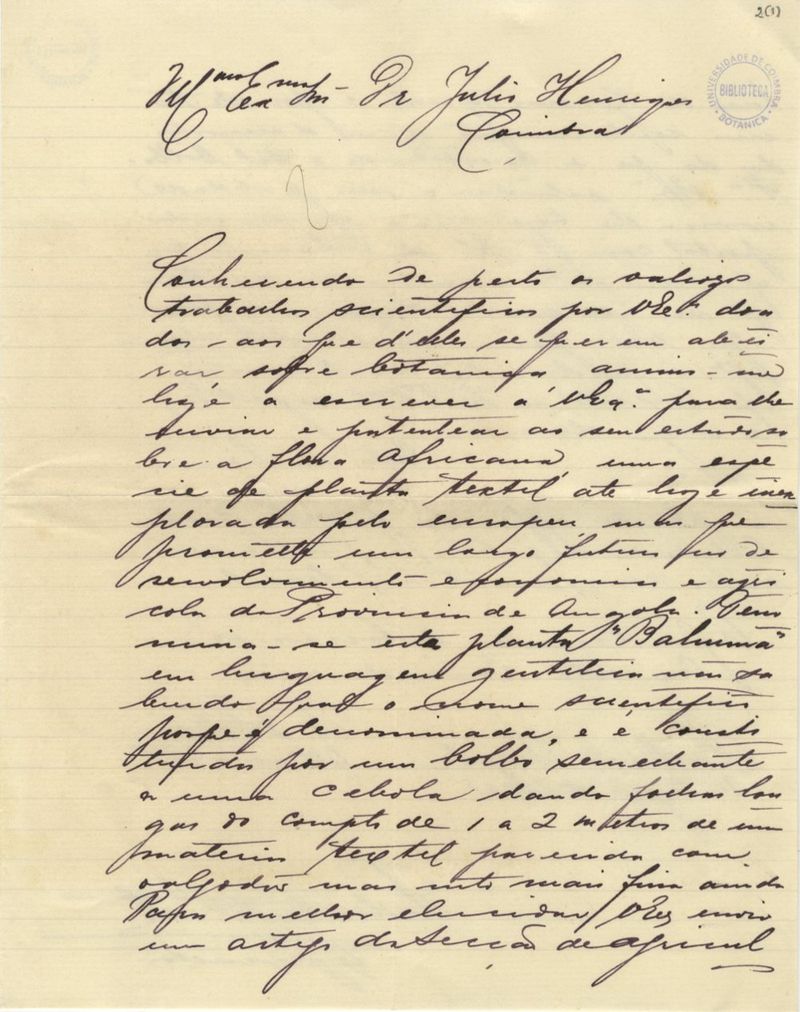 [Carta], 1909 Ago. 14, Bailundo, Angola, [a] Julio Henriques, Coimbra