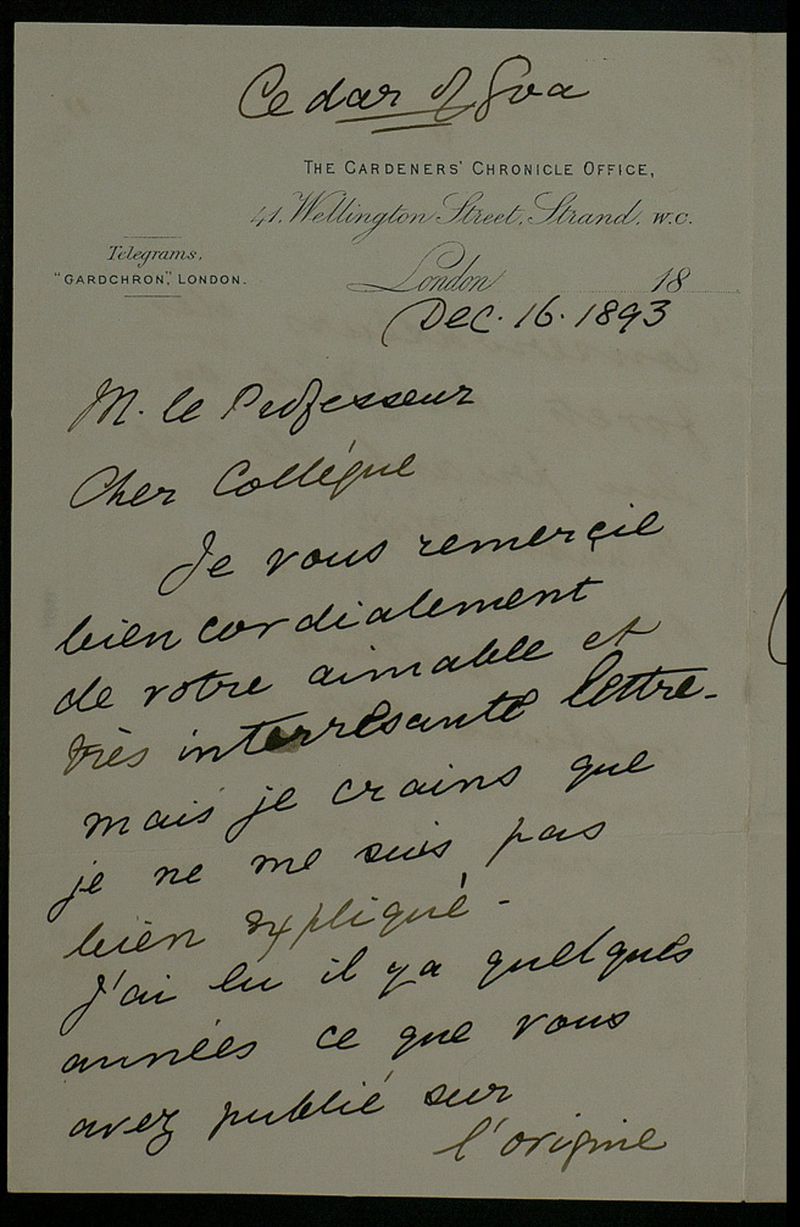 [Lettre], 1893 Dec. 16, London, [to Júlio Henriques, Coimbra]