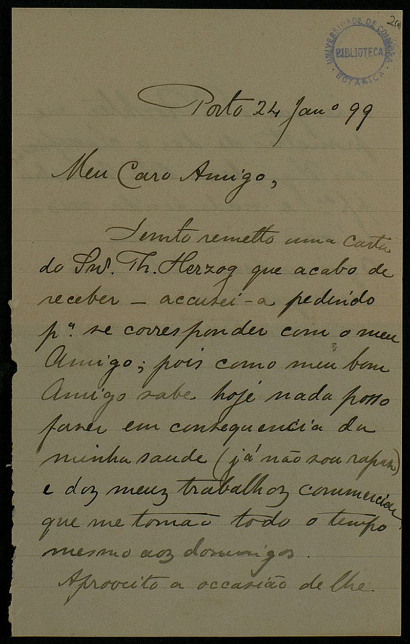 [Carta], 1899 Jan. 24, Porto, [a Júlio Henriques], Coimbra