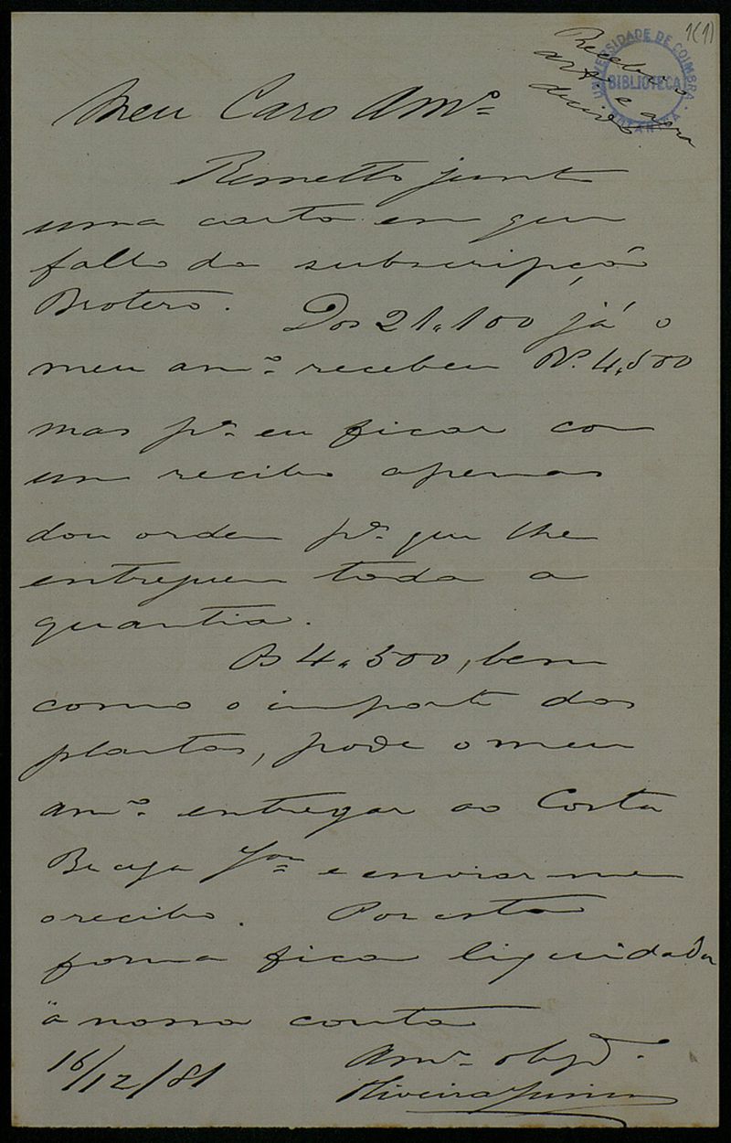 [Carta], 1881 Dez. 16, Porto, [a Júlio Henriques], Coimbra