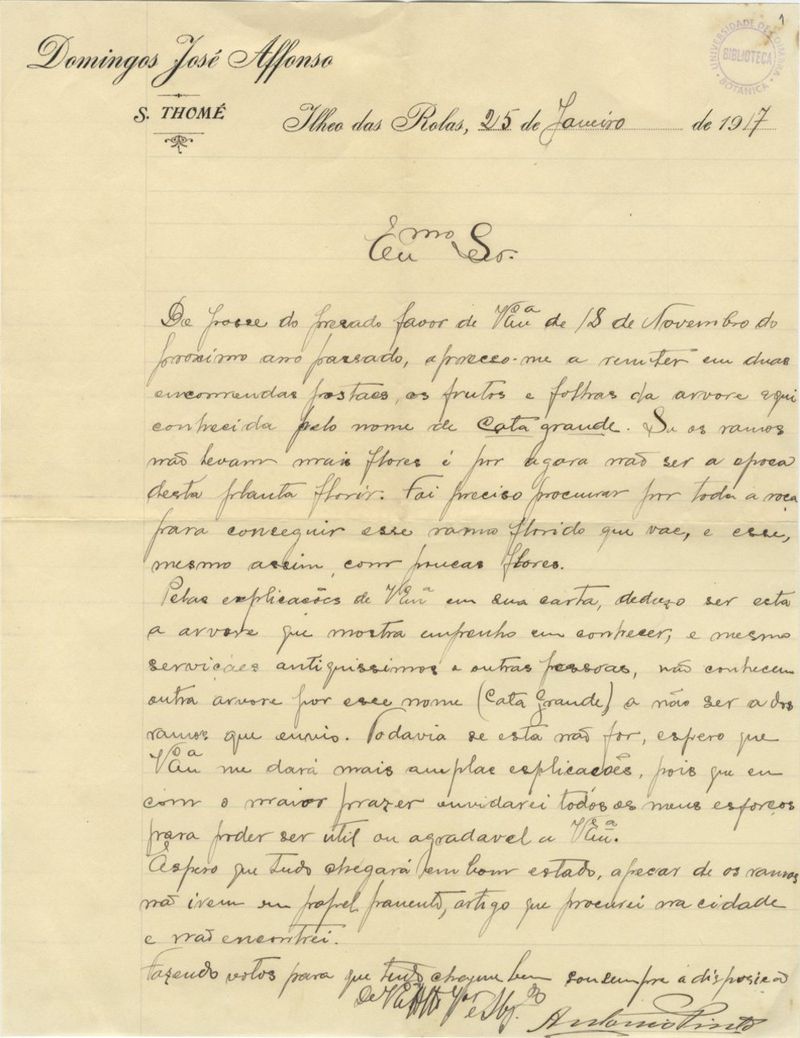 [Carta], 1917 Jan. 25, Ilheo das Rolas, S. Thomé, [a Júlio Henriques, Coimbra]