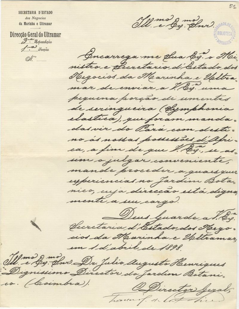 [Carta], 1898 Abr. 01, [Lisboa, a] Julio Augusto Henriques, Coimbra
