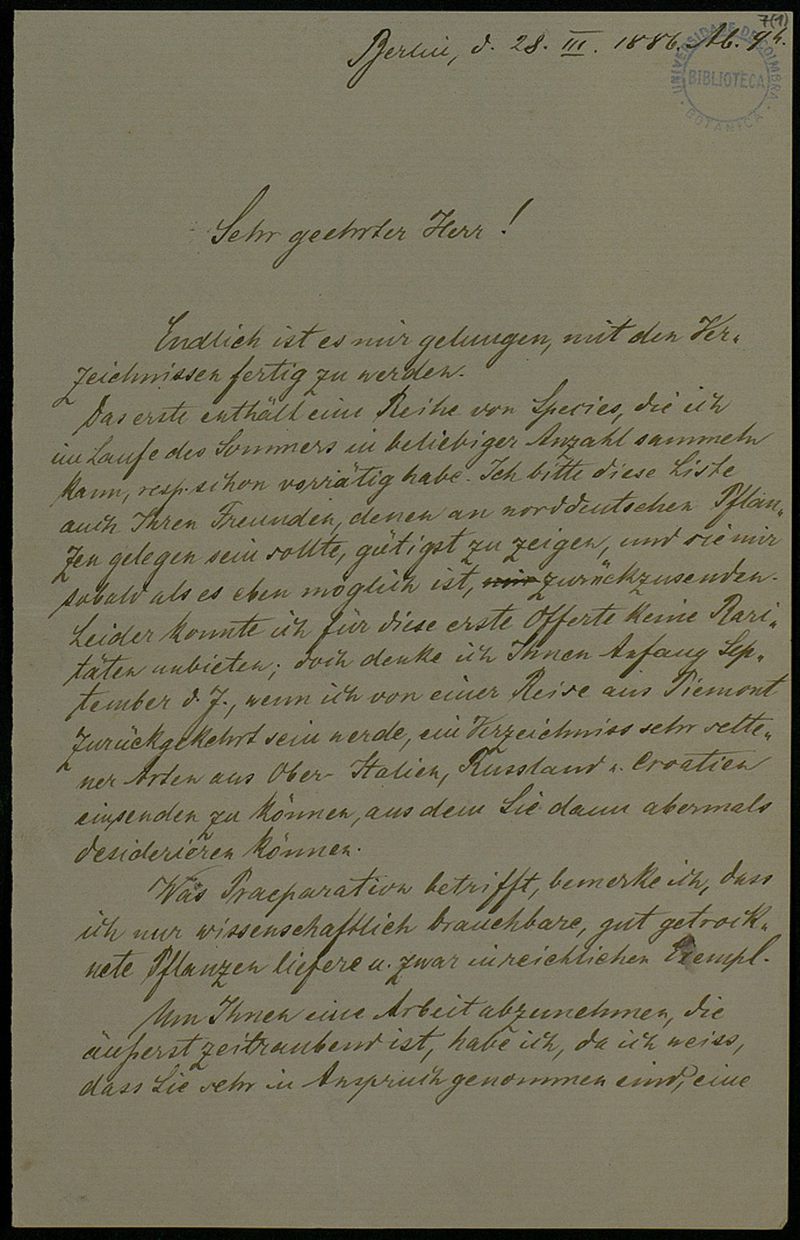 [Brief], 1886 März 28, Berlin, [an] Herr[n Adolfo F. Moller, Coimbra]