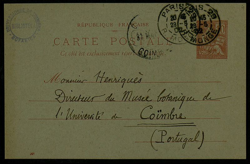 Carte Postale, 1902 mai 28, Paris, à Monsieur [Júlio] Henriques, Coimbra