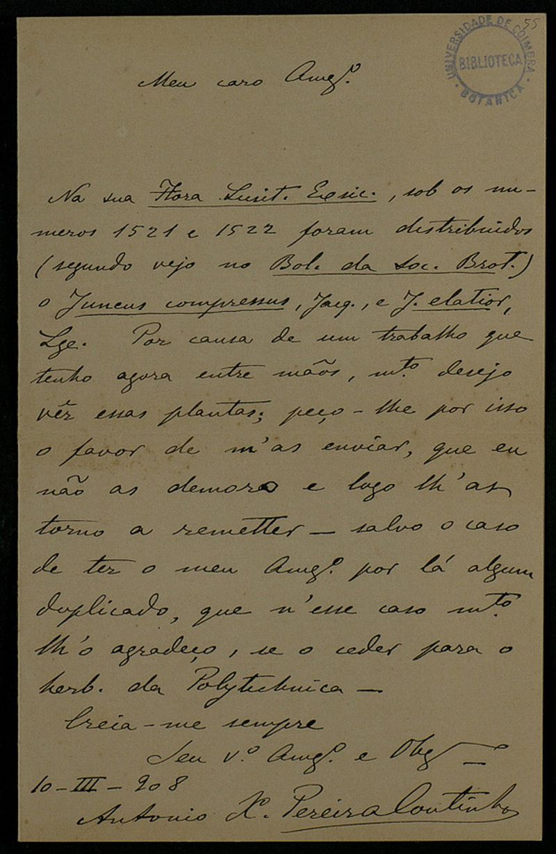 [Carta], 1908 Mar. 10, [Lisboa], [a Júlio Henriques, Coimbra]