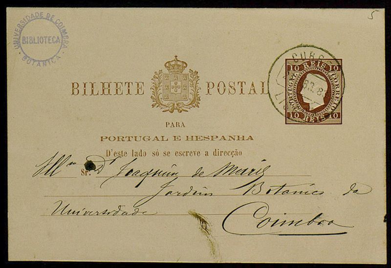 Bilhete Postal, 1883 Abr. 25, Lisboa, [a] Dr. Joaquim de Mariz, Coimbra
